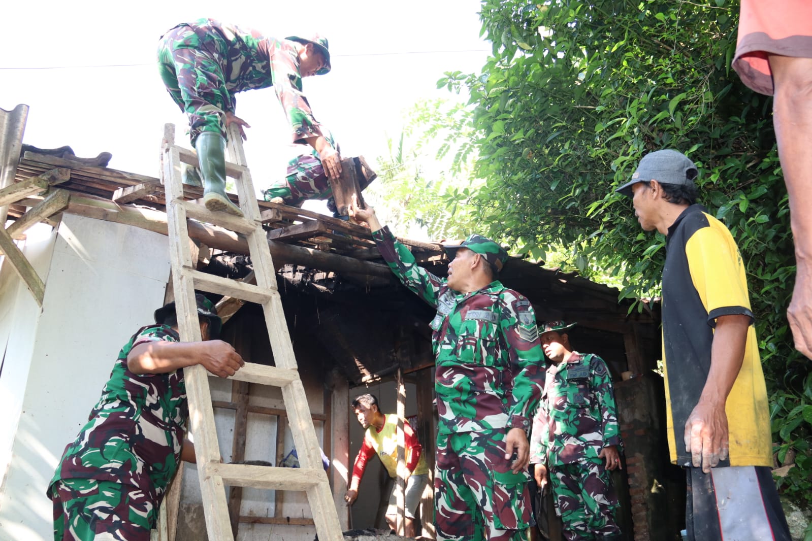 Pembongkaran rumah dipimpin anggota Pra TMMD, Serda Anas Tauvik selaku Bintara Pembina Desa (Babinsa), dengan melibatkan warga yang bergotong royong membantu proses pelepasan atap, dinding, hingga pemilahan material bangunan lama yang masih dapat digunakan kembali untuk pembangunan berikutnya.